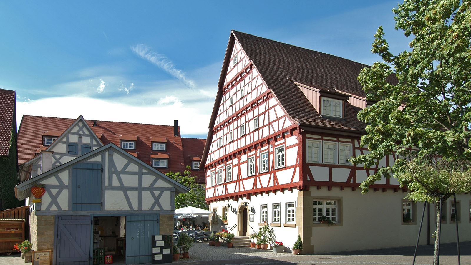 Im historischen Ambiente des denkmalgeschützten Fachwerkes unseres liebevoll restaurierten Bauernhofes "Im Schnitzbiegel" genießen Sie laue Sommerabende mit Leckereien für Kehle und Magen. Vom Vesperteller oder einem feinen Salat, über hausgemachte Maultaschen, Rostbraten, Hüft- oder Filetsteak.
